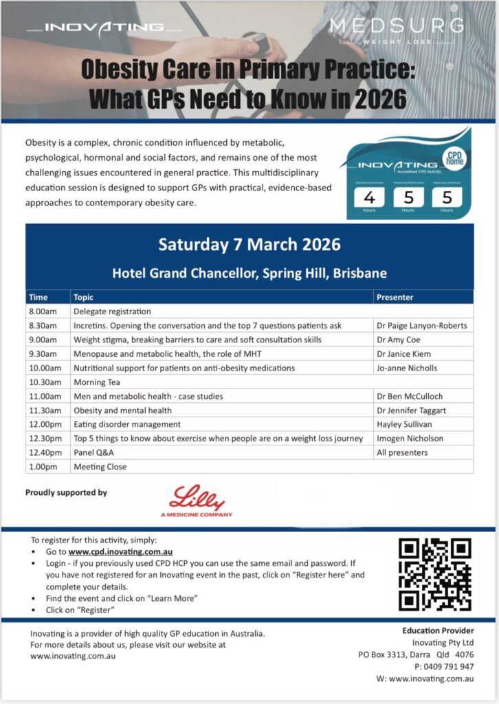 MedSurg Weight Loss regularly hosts educational events for Patients and Practitioners. Please see below for our list of events and register your interest in attending.